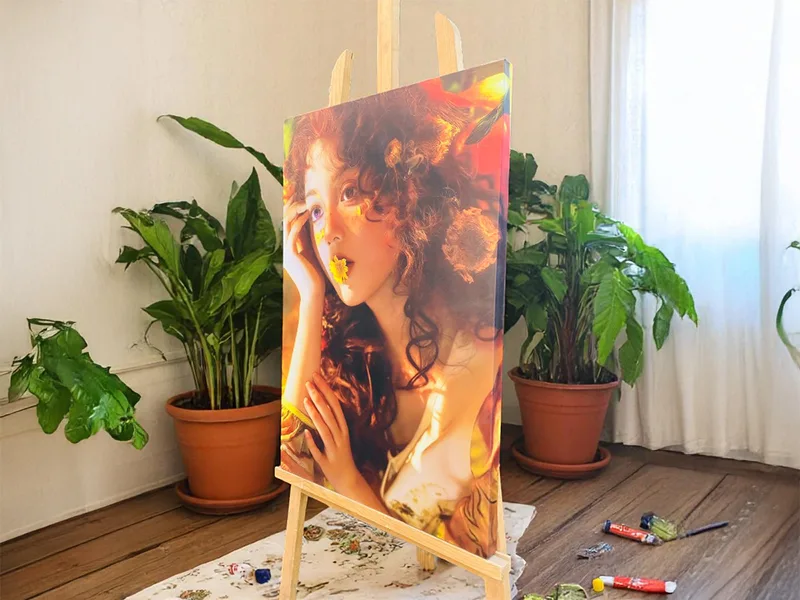 Đây là dòng ảnh cao cấp được ép trực tiếp lên mặt gỗ MDF chất lượng cao, kết hợp với lớp phủ vân lụa mềm mịn, tạo hiệu ứng 3D sống động và chiều sâu tinh tế. Bề mặt ảnh có độ phản chiếu nhẹ, sắc nét, màu sắc sang trọng, tạo cảm giác như một tác phẩm nghệ thuật cổ điển.