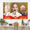 Kích thước: nhận in theo yêu cầu, phù hợp treo phòng khách, hội trường, cơ quan, trường học.