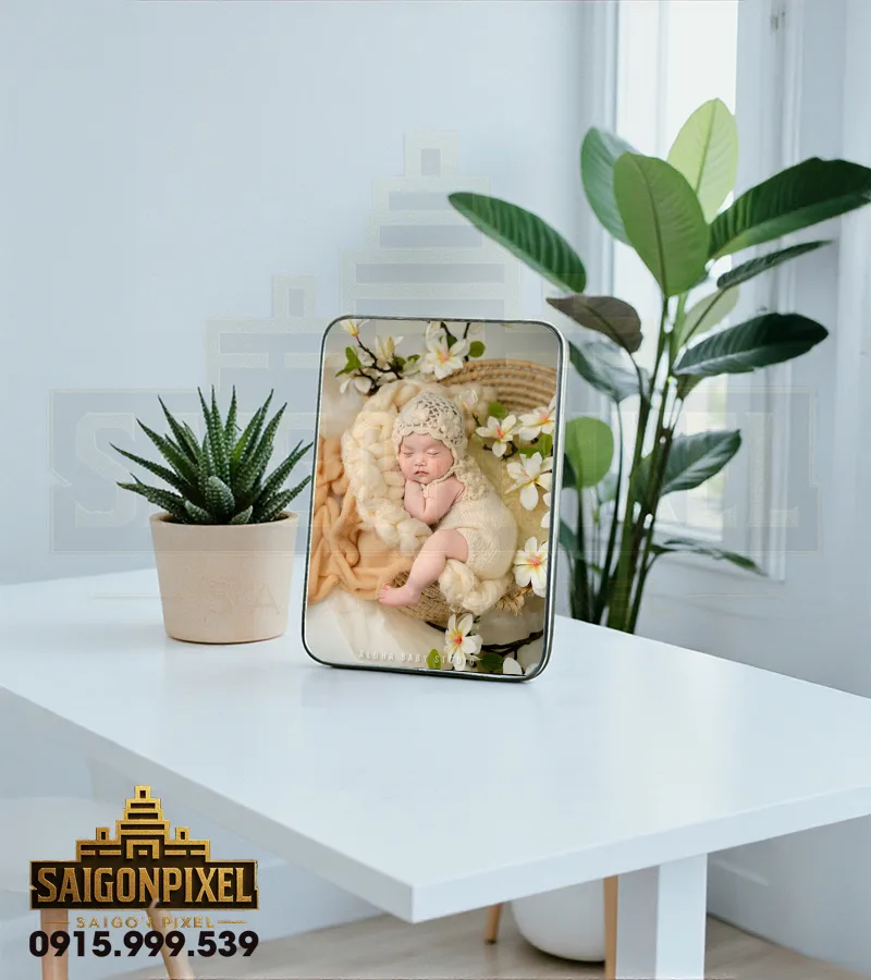 Chuẩn 15x21cm – lý tưởng để trưng bày trên bàn làm việc, kệ tủ, hoặc làm quà tặng sinh nhật, đầy tháng, thôi nôi.