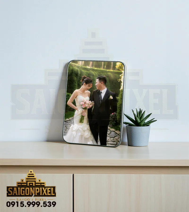 Ảnh Gỗ Tráng Gương Bo Viền Bạc – Kích Thước 15 x 21cm