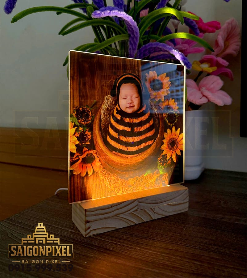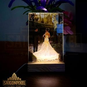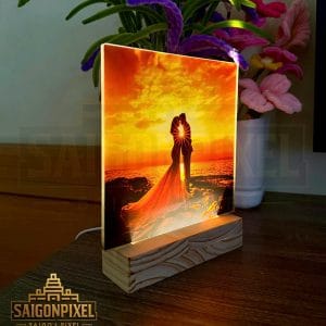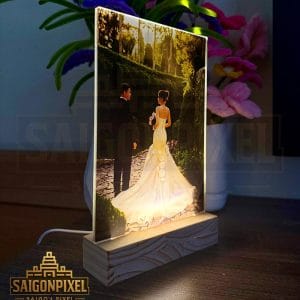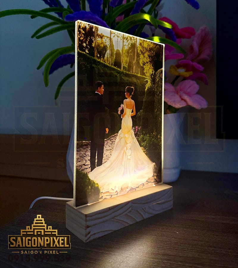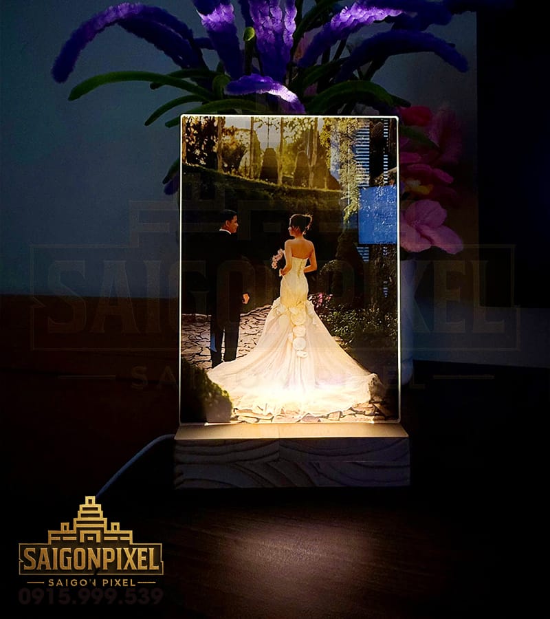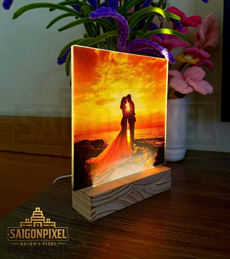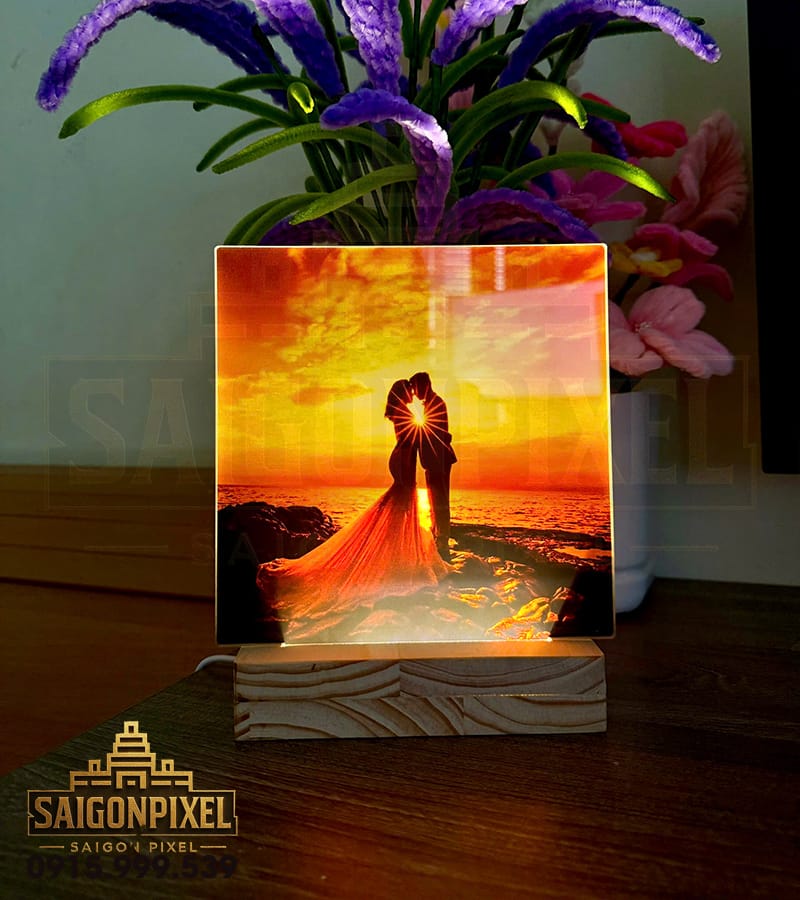 Ảnh mica đế đèn là sự kết hợp hoàn hảo giữa nghệ thuật in ảnh cao cấp và công nghệ chiếu sáng hiện đại. Ảnh được in trên chất liệu mica trong suốt, sắc nét và bền màu, đặt trên đế gỗ tích hợp đèn LED ánh vàng dịu, tạo nên hiệu ứng phát sáng sang trọng và ấm áp.