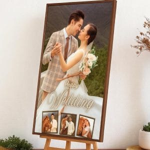 Khung ảnh: Khung hộp dày 2.5–3 cm, tone đen
